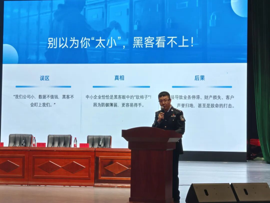 活动现场同步开展法律宣讲与政策解读“双服务”。铁西分局民警结合企业经营常见风险,通过真实案例拆解反诈技巧、《网络安全法》核心要求及经济犯罪防范要点,针对合同诈骗、数据泄露、职务侵占等高频问题给出可操作的防范方案;铁西区税务局业务骨干聚焦小规模纳税人增值税免征、“六税两费”减免等五类税收优惠政策,用实例演算帮企业算清“优惠账”,确保政策红利直达快享。
